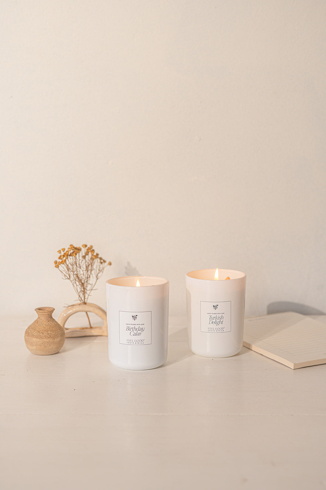 At Feel Good, we hold self-care close to our hearts, understanding the importance of prioritising your mental well-being. We believe in inviting only the best, most soothing ingredients into the sacred spaces of your home. Since our humble beginnings, we've been renowned for crafting luxurious, nourishing, and indulgent products. Our candles, for instance, are meticulously crafted using 100% Soy wax sourced from renewable vegetable sources. Hand-poured in slow, small batches, we ensure quality remains at the forefront of our endeavours.